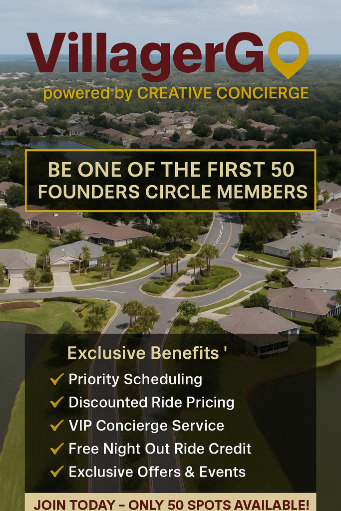 VillagerGo is powered by Creative Concierge, a name synonymous with trust in The Villages. We aren’t just a ride-share app; we are a local team of professional drivers dedicated to senior-friendly service.